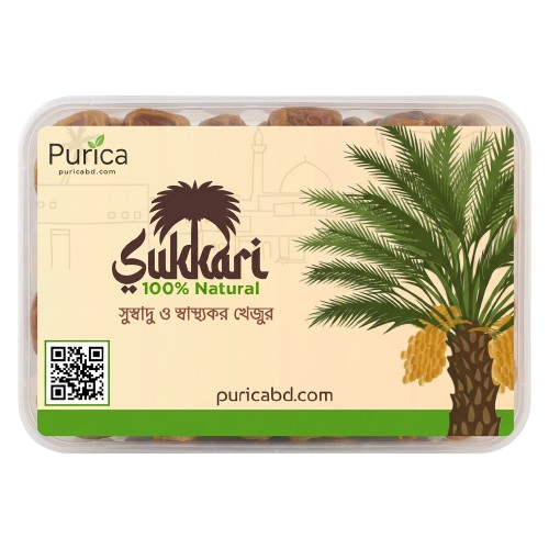 সৌদি আরবের ঐতিহ্যবাহী ও প্রিমিয়াম মানের সুক্কারি  খেজুর স্বাদ ও গুণে অনন্য। প্রাকৃতিকভাবে মিষ্টি, নরম ও রসালো এই খেজুর মুখে দিলেই গলে যায়। উন্নতমানের বাগান থেকে বাছাইকৃত এই খেজুর প্রতিদিনের পুষ্টি চাহিদা পূরণে একটি আদর্শ খাবার। সুক্কারি খেজুরে রয়েছে প্রাকৃতিক শর্করা, ফাইবার, ভিটামিন ও মিনারেল যা শক্তি জোগায়, হজমে সহায়তা করে এবং শরীরকে সতেজ রাখে